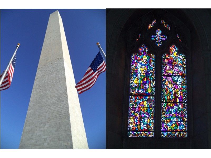 Nous monterons ensuite au sommet du Washington Monument, tour de 169 mètres de haut ressemblant à un obélisque. Édifiée en 1885, en l'honneur du 1er président des États Unis, Georges Washington, elle est faite de marbre, de gré et de granit. Elle fut, à l'époque, la plus haute construction du monde avant d'être détrônée par la construction de la tour Eiffel en 1889. La vue y est spectaculaire et nous pouvons apercevoir le Pentagone et les nombreux grands édifices.